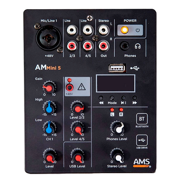 • Controles de tono y ganancia en la entrada MIC/LINE