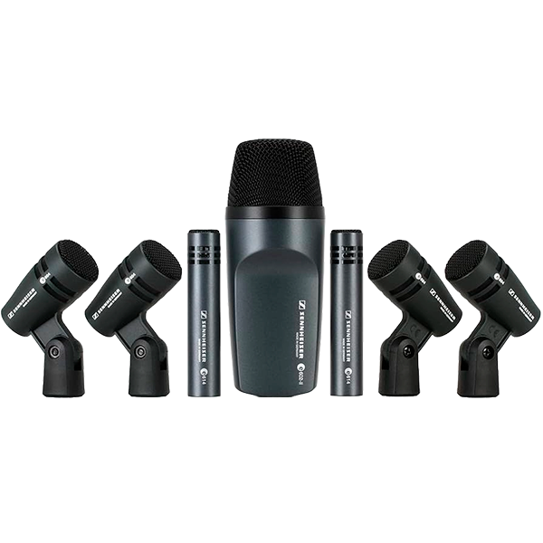 El Kit de batería Sennheiser E600 es una solución profesional para la micificación de baterías, ideal tanto para estudio como para presentaciones en vivo. Incluye micrófonos dinámicos para el bombo, la caja y los toms, y micrófonos de condensador para overheads, ofreciendo un sonido claro y potente.