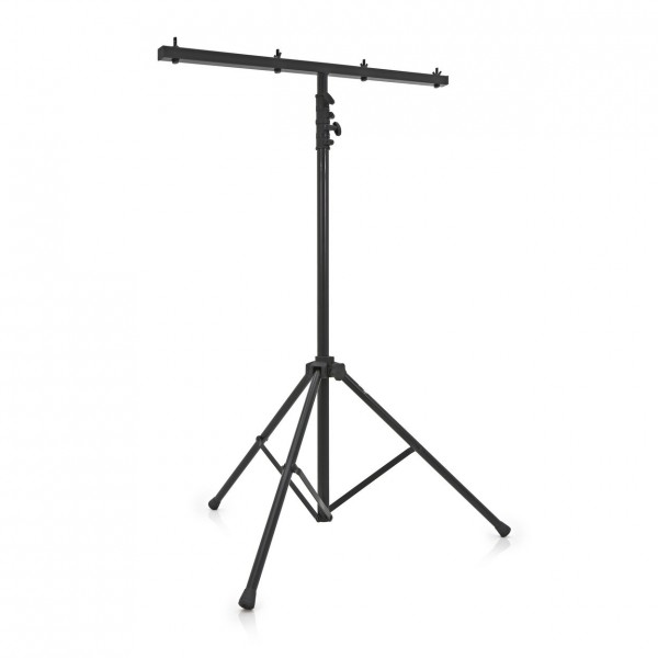 Soporte de iluminación con base de trípode para mayor estabilidad, la parte superior esta compuesta de una barra en forma de «T» que permite montar las focos de una manera rápida y segura mediante sistema de tornillos.